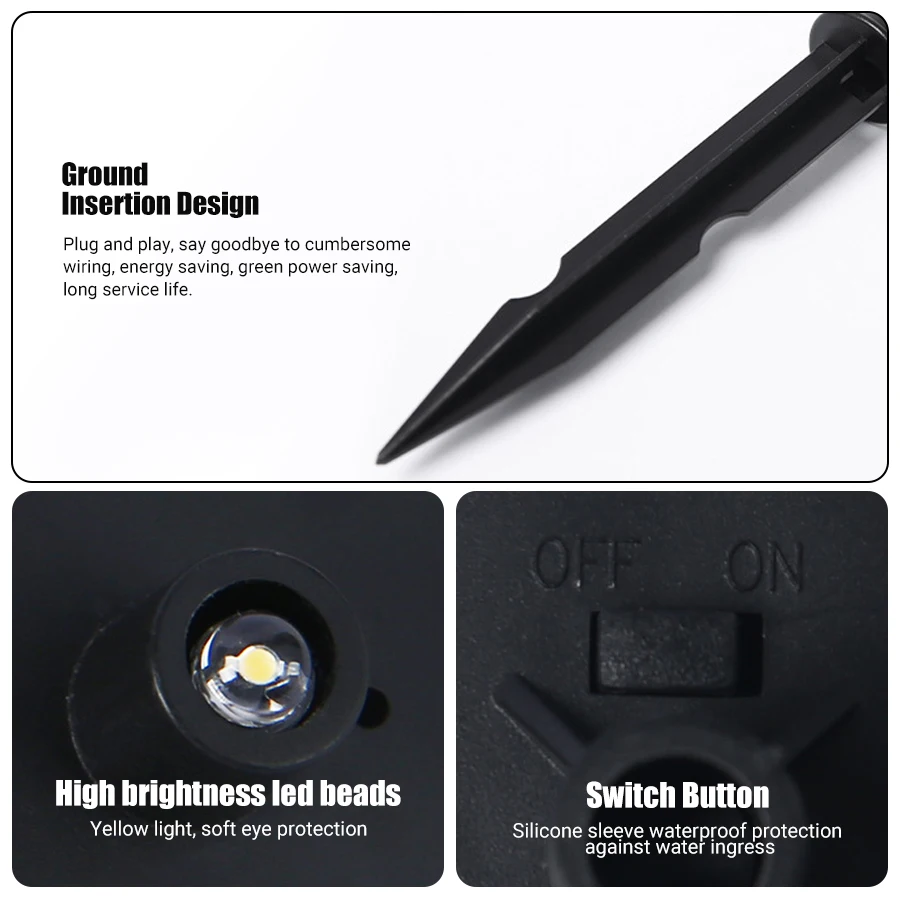 3.Easy to install: No wiring or external power supply is required, just insert the installed solar garden light into the soil, easy to carry, and can be used without other tools.