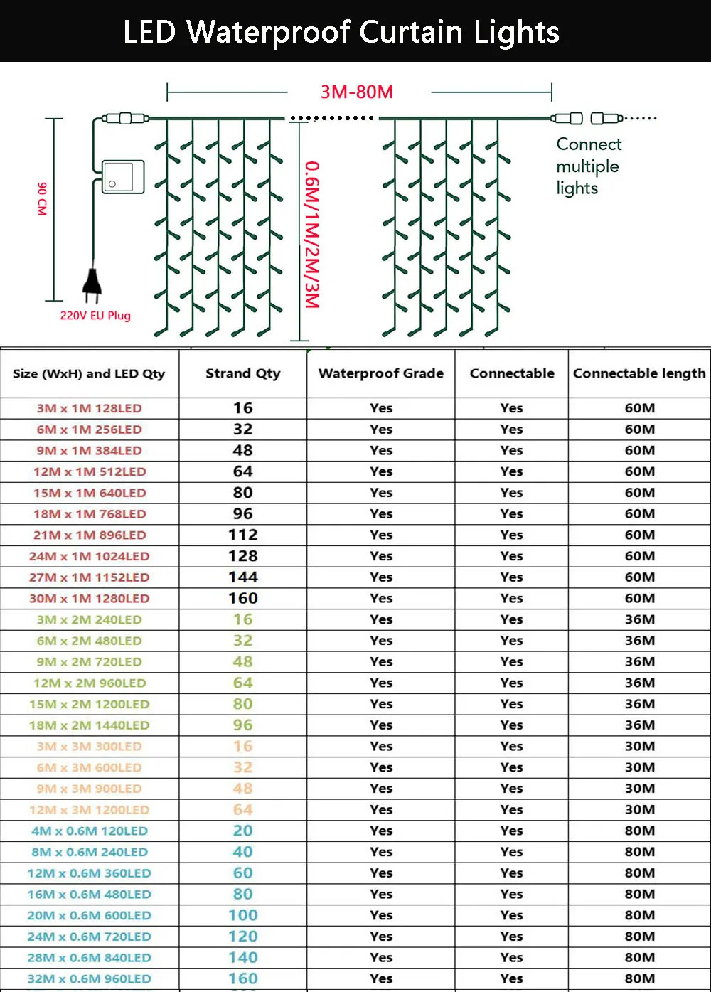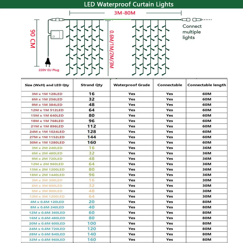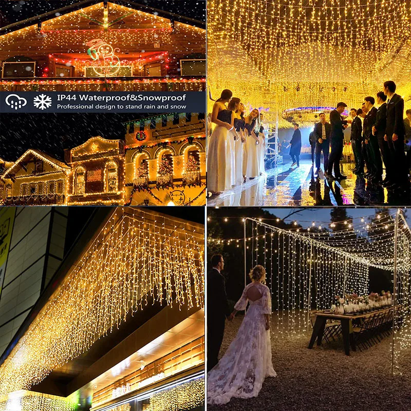[Great Decoration for Your Home]: Our outdoor curtain lights are waterproof (IP44), they withstand heavy rain and snow.It can not only be used as Christmas, birthdays, party, wedding, backdrop, or holiday decor but is also very suitable for daily use, such as hanging it on tapestries, gauze, sliding doors, walls, windows, pergola, patio, tree, etc.