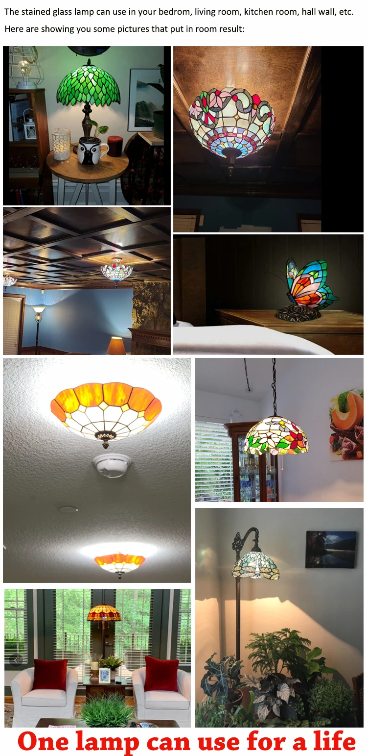 The stained glass surface can be tapped: please note that this method requires correct tapping! Look for a piece of glass next to you and knock on the lampshade. You will find that the lampshade will make a crisp sound, which cannot be done by knocking on plastic. (Because the colored glass uses a special process, hitting the lampshade with metal will cause errors and make you mistakenly think that it is plastic! But it is not plastic but metal)