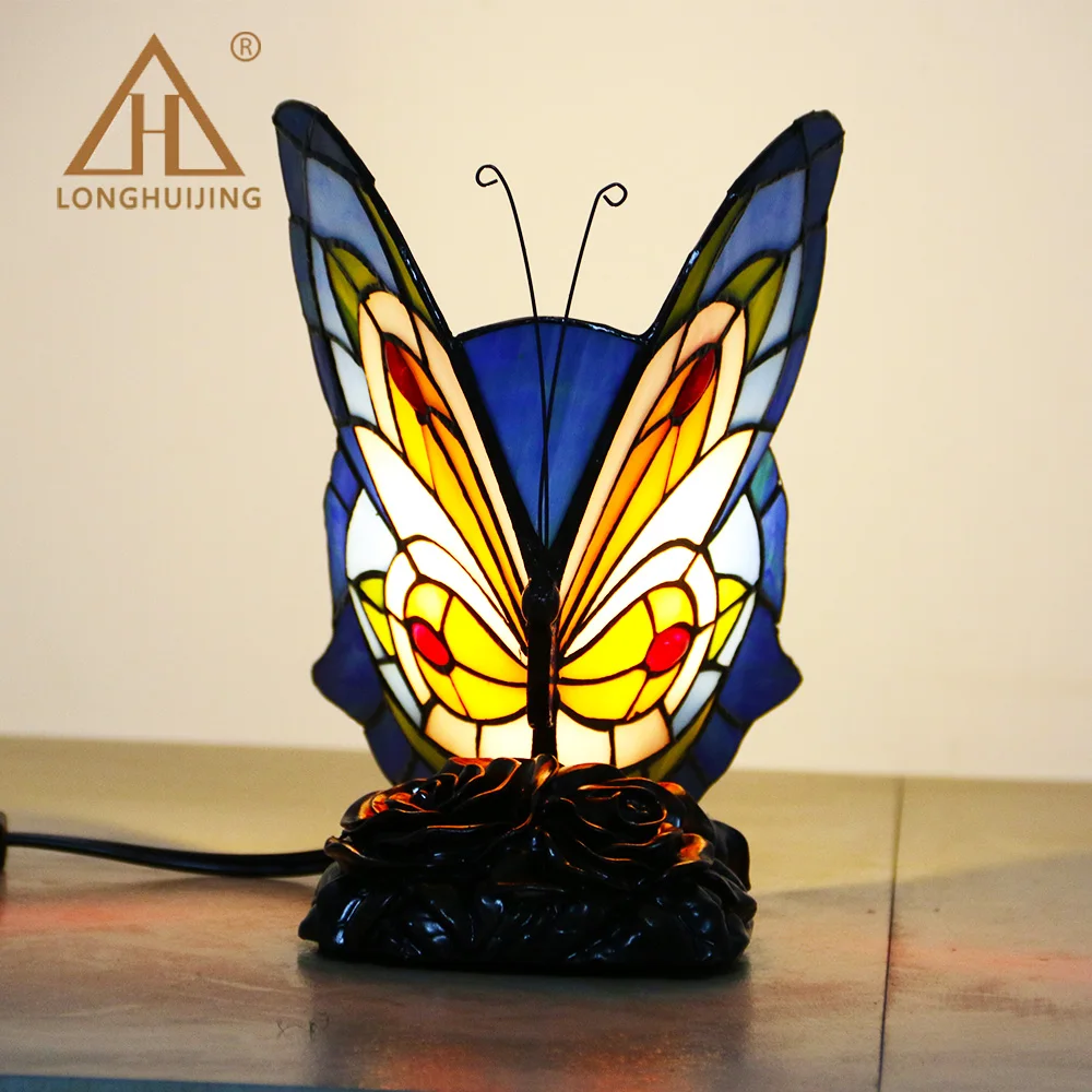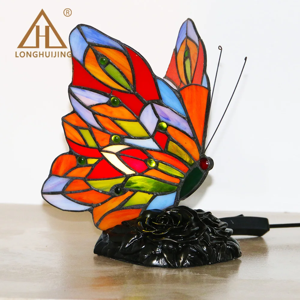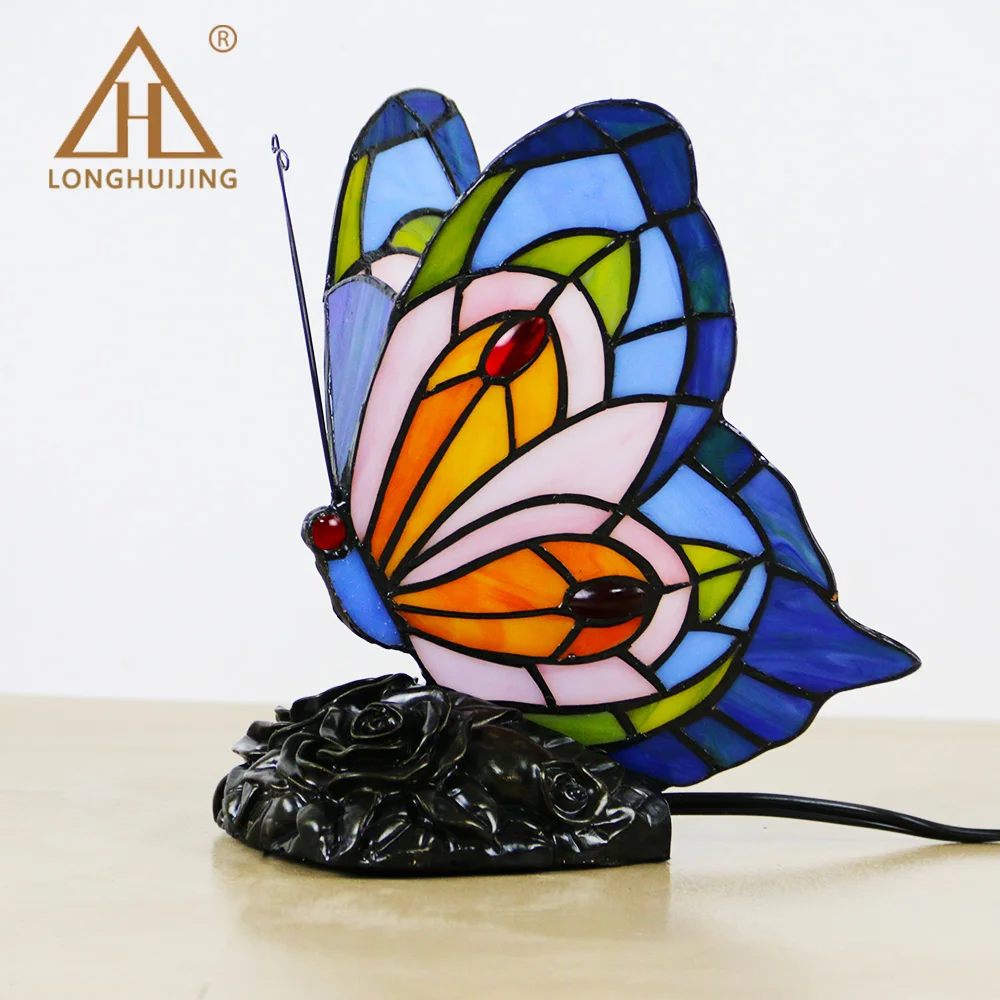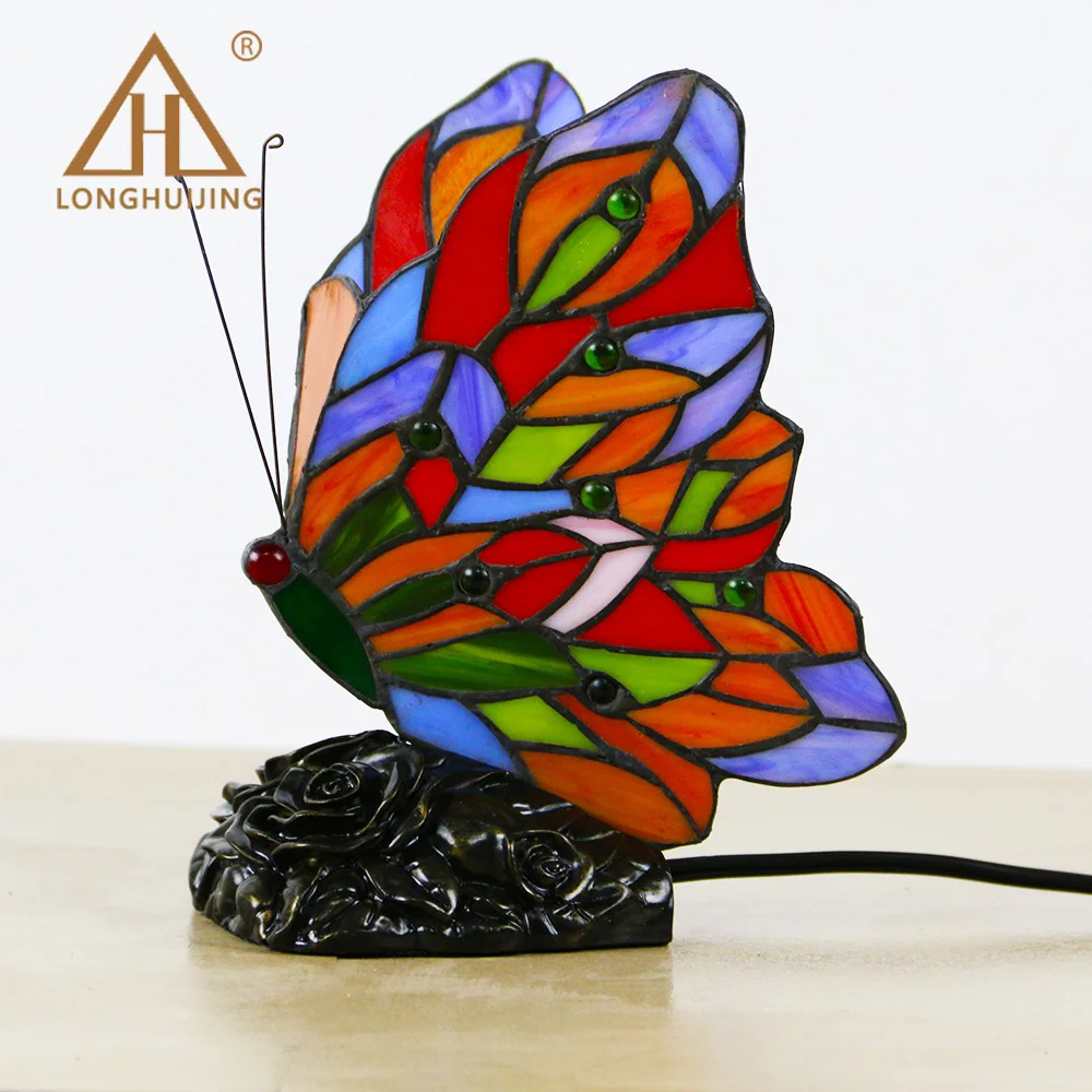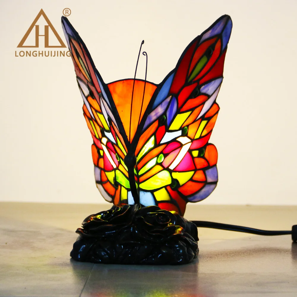 Title: LongHuiJing Tiffany Style Stained Glass Accent Lamp Resin Base Night Light Stain Glass home decor Butterfly Lamp