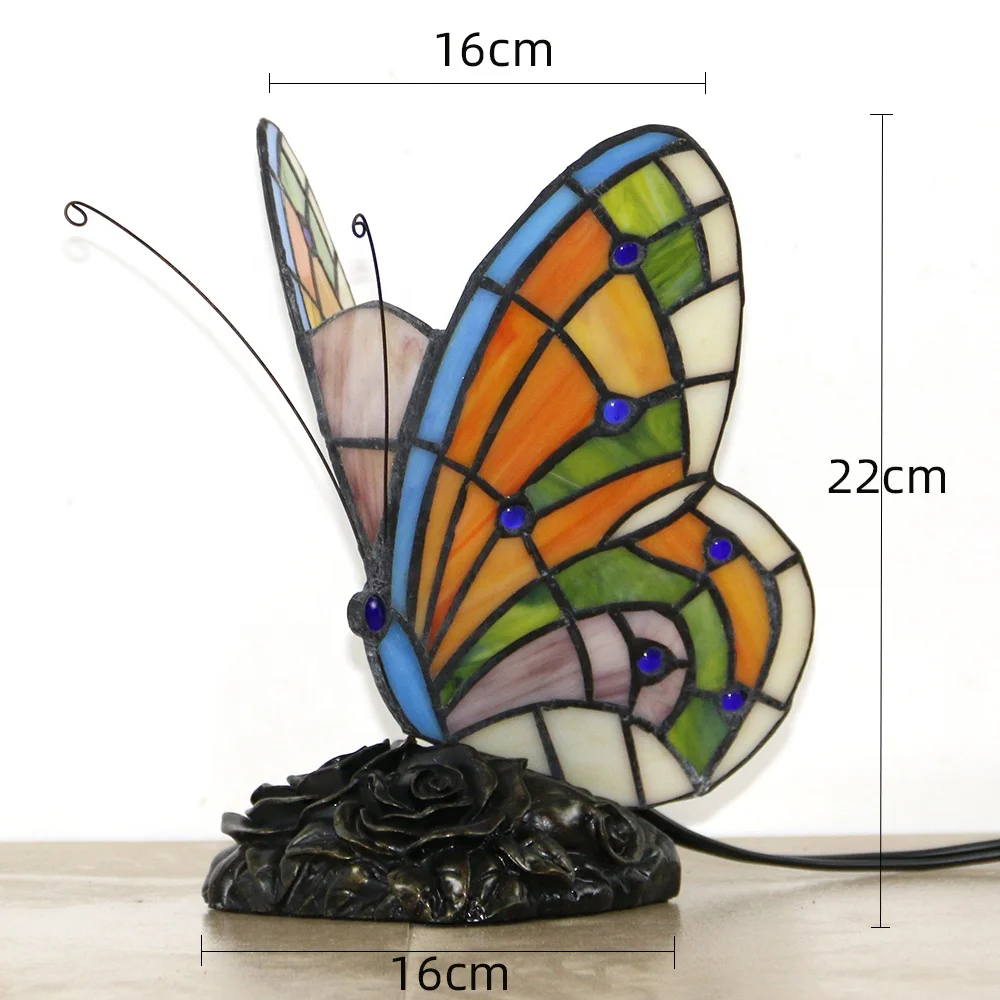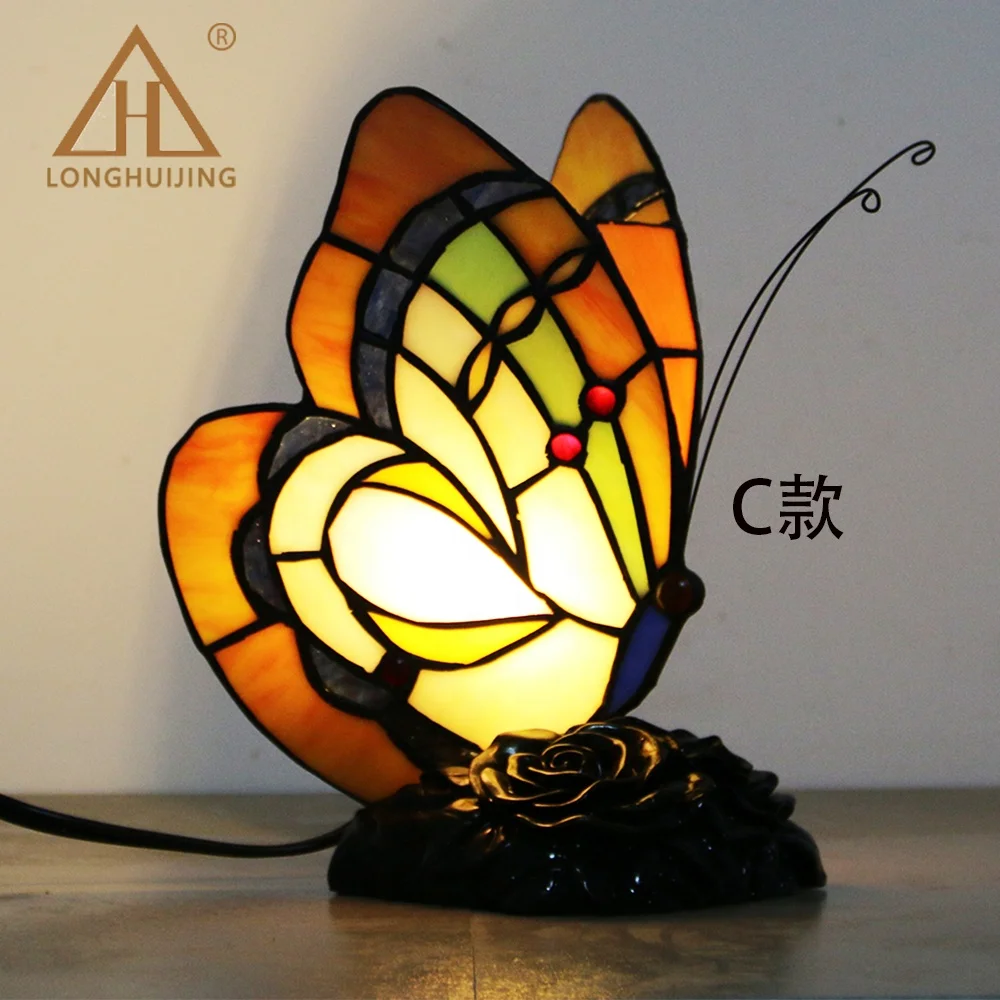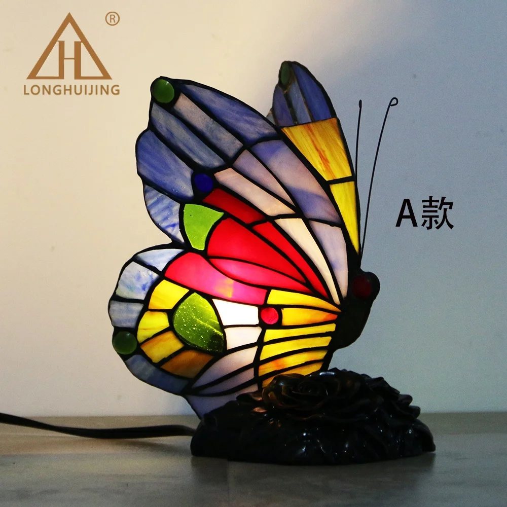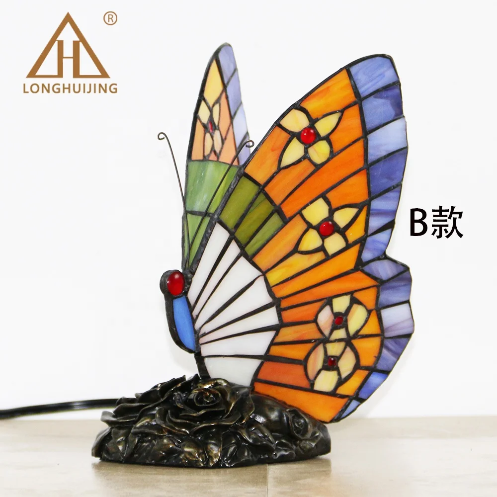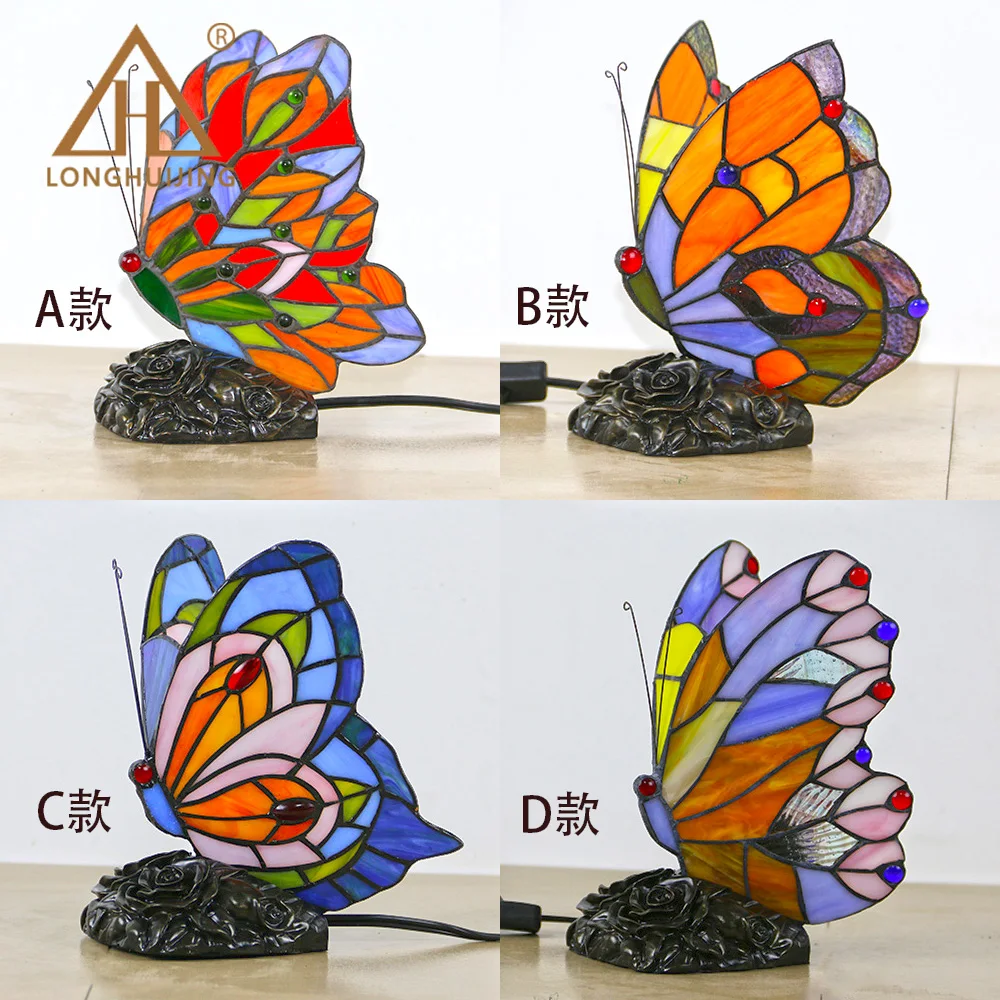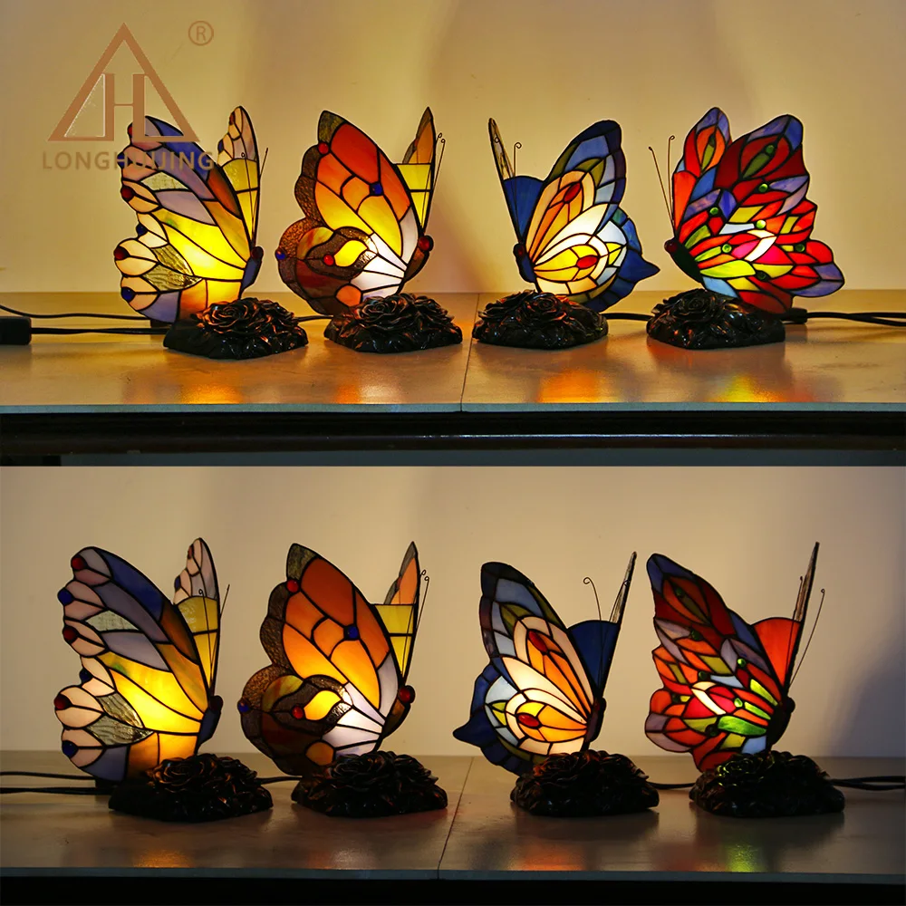 Title: LongHuiJing Tiffany Style Stained Glass Accent Lamp Resin Base Night Light Stain Glass home decor Butterfly Lamp