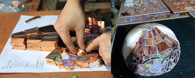 Copper foil is not visible on the surface of Tiffany’s lampshade. Because glass and glass cannot be directly welded, copper foil should be used to wrap the edge of each piece of glass to help solder.