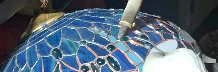 Tiffany’s lampshade is made of high-quality stained glass. The color of each piece of glass must be strictly selected. Our stained glass is different from ordinary glass. The surface is not very smooth, and most of them have patterns. We need the color of any small surface to be the same as the surface color.